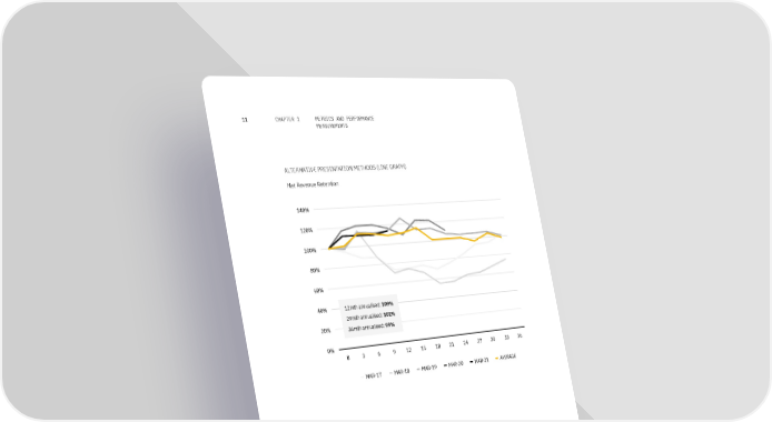METRICS AND PERFORMANCE 11 CHAPTER 1 MEASUREMENTS ALTERNATIVE PRESENTATION METHODS (LINE GRAPH) Net Revenue Retention 140% 120% 100% 80% 60% 40% 12mth annualised: 109% 24mth annualised: 101% 20% 36mth annualised: 99% 0% 0 3 6 9 12 15 18 21 24 27 30 33 36 MAR-17 MAR-18 MAR-19 MAR-20 MAR-21 AVERAGE