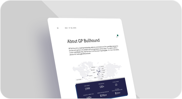 50 ABOUT GP BULLHOUND About GP Bullhound GP Bullhound is a leading technology advisory and investment firm, providing transaction advice and capital to the world’s best entrepreneurs and founders. Founded in 1999 in London and Menlo Park, the firm has 13 offices spanning the globe. For more information, please visit www.gpbullhound.com. YEAR FOUNDED PROFESSIONALS OFFICE LOCATIONS 1999 180+ 13 AUM ACROSS SUCCESSFUL TRANSACTIONS TRANSACTION VALUE ADVISED ON GP BULLHOUND MANAGED FUNDS 640+ $39bn+ $1bn+ We have partnered with many of the world's leading SaaS companies GP Bullhound partners with entrepreneurs throughout their founding journey, supporting them with advisory, capital, insights and access to our global network.